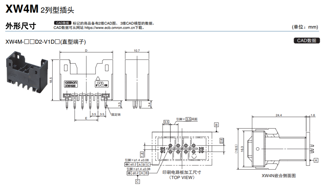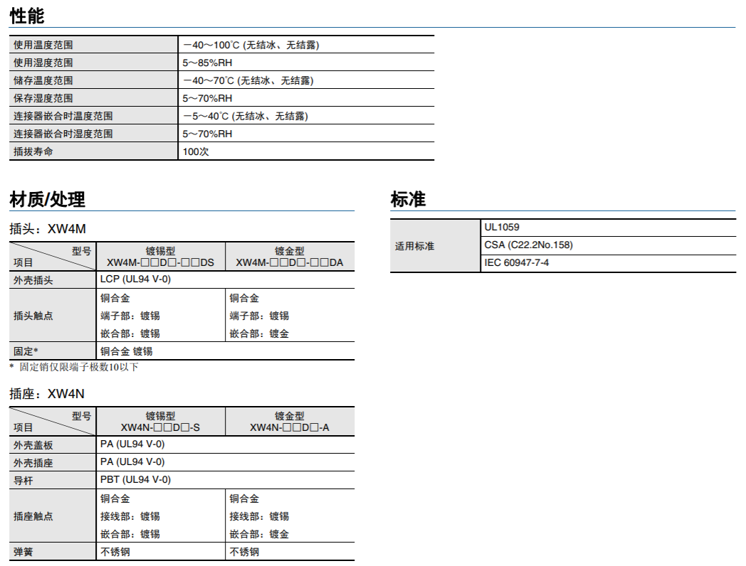低插拔力推入式印刷電路板用連接器XW4M