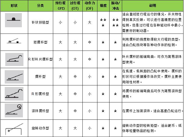 歐姆龍微動開關驅動桿的種類和選擇辦法,你了解多少?