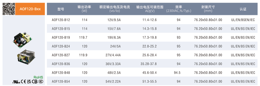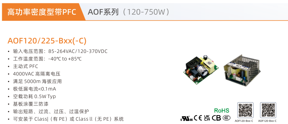 開關(guān)電源高功率密度型帶PFC AOF系列(120-750W)
