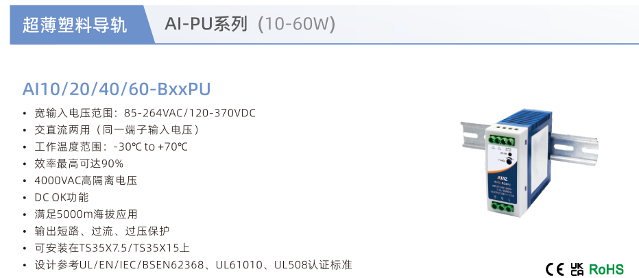 開關(guān)電源超薄塑料導(dǎo)軌AI-PU系列10-60W