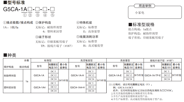 G5CA-1A-TP-E歐姆龍功率繼電器