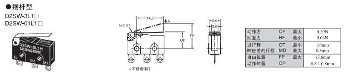 D2SW 密封型超小型基本歐姆龍開(kāi)關(guān)