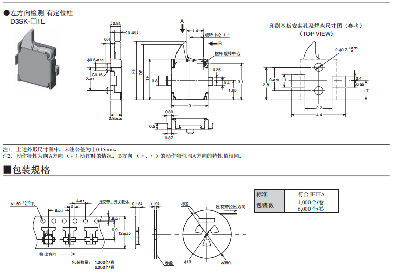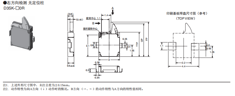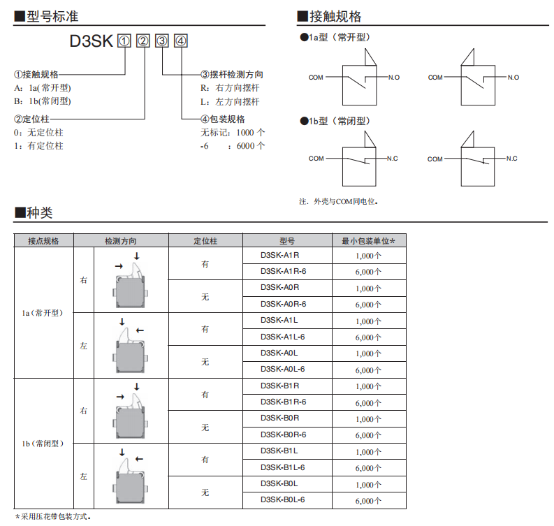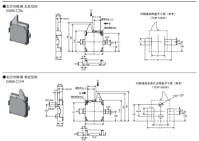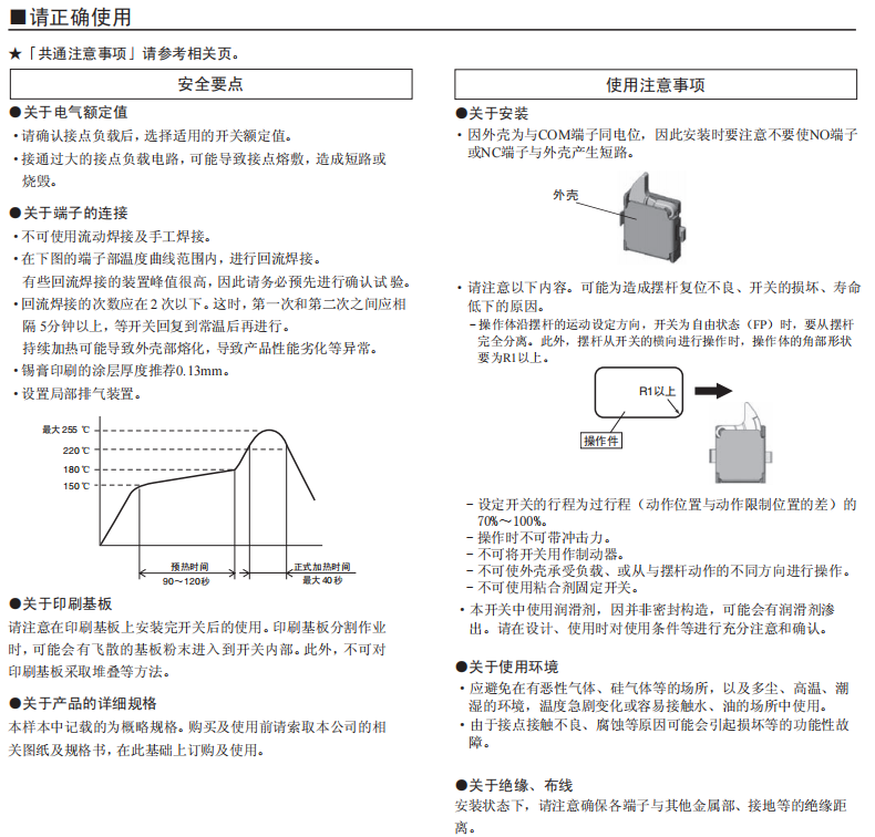 「社內較小級」可實現(xiàn)高精度動作的檢測開關 (寬3.0mm×長3.5mm×厚0.9mm) 小型及薄型,為機器的小型化、薄型化作貢獻。 特定的接點機構,實現(xiàn)了高精度的動作位置及高可靠性的接觸。 長行程提高了使用的便捷性。 接觸規(guī)格(1a、1b)及多種擺桿,可適合范圍寬廣的各種用途。