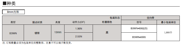 B3WN 系列歐姆龍輕觸式開關