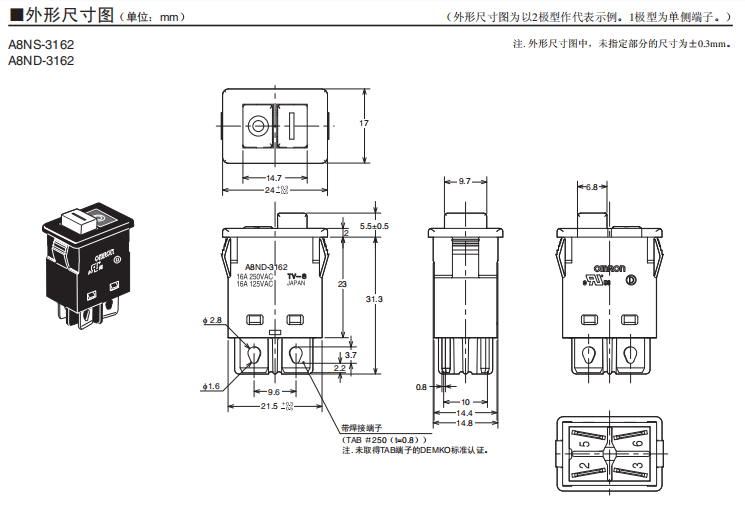 A8ND-3162船形歐姆龍開關