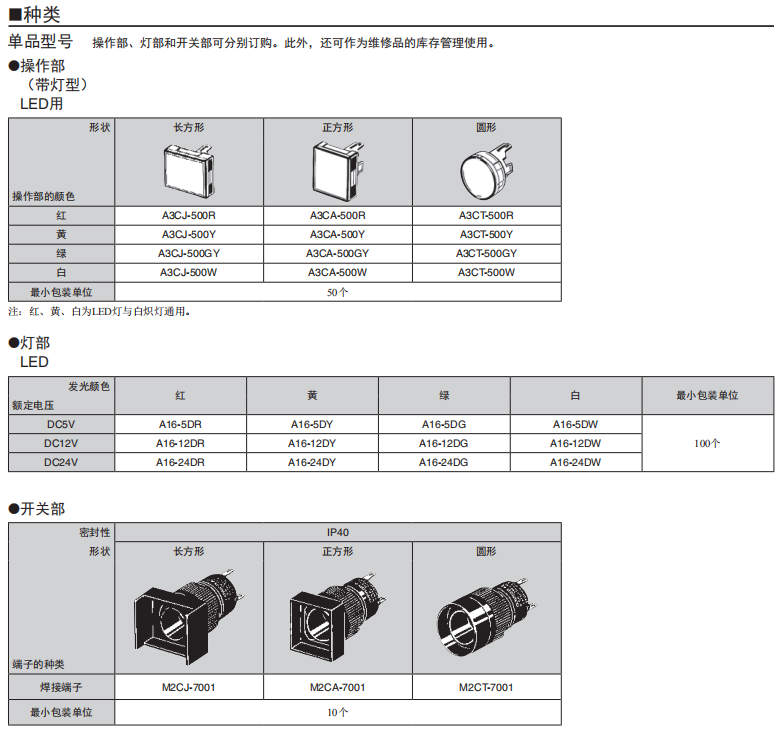 A16□-P 按鈕歐姆龍開關(guān)(分離式)(帶燈·不帶燈)(φ16)