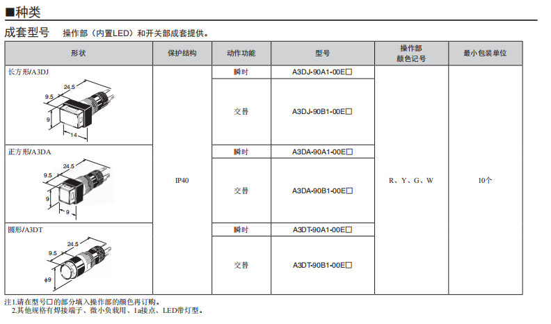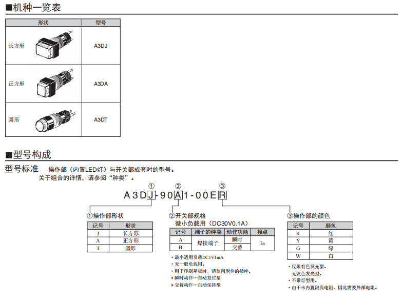A3C系列按鈕歐姆龍開關(帶燈、不帶燈)(圓型φ12)