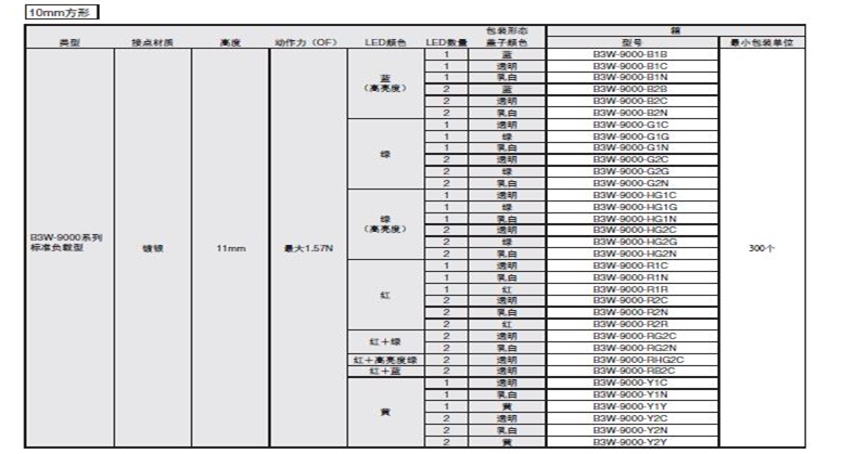 B3W-9000系列歐姆龍輕觸式開關(guān)